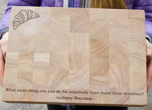 What could be more special than serving breakfast on a beautiful, crafted breakfast board? Personalise it with your own heartfelt message for a truly thoughtful and unique gift.  Perfect for surprising loved ones with breakfast in bed or elevating everyday breakfasts with a little extra warmth and style.