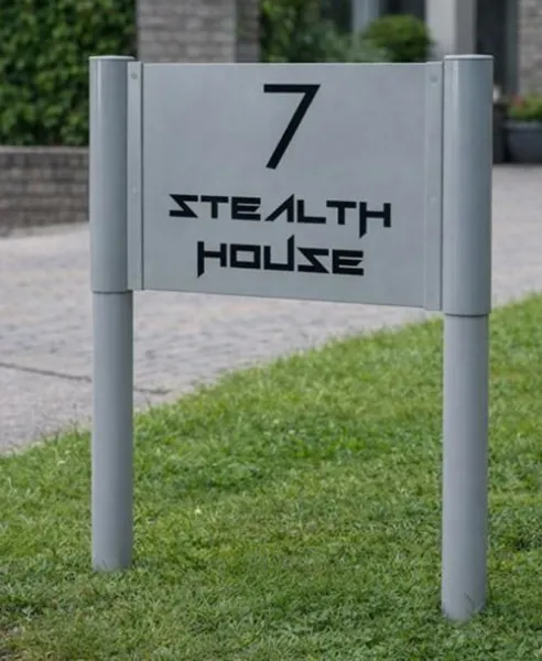 Typically used for commercial signage, this aluminium sign also works beautifully for modern house signs, offering a clean, architectural look with excellent durability.