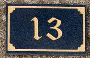 House numbers made in eight different stones and painted in twelve colours:- Silver, gold, black, white, ivory, crimson, purple, dark green, lichen green, light grey, dark blue and pearlescent blue. |